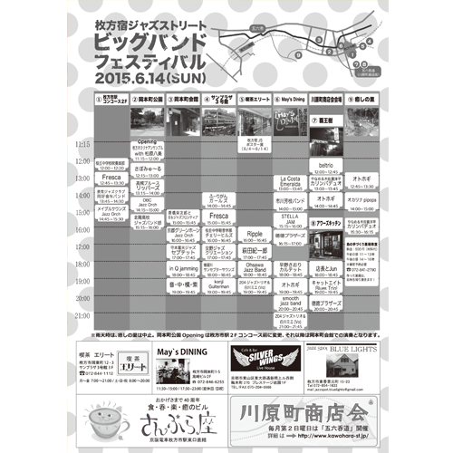大阪府枚方市、京阪「枚方駅」にて行なわれたビッグバンドフェスのフライヤーを製作しました。web製作