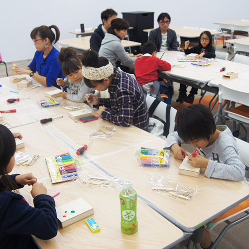 甲南大学同窓会主催のイベント。大学OB・OGの方々がたくさん来られる中、お子様から大人まで楽しめるワークショップとして「カリンバ作り」と「だるま絵付け」を行ないました。