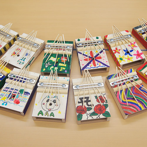 「メトロこうべ」にて行われたイベントで「カリンバ作り」と「だるま絵付け」のワークショップを行ないました。駅構内でのイベントで、側を音楽隊が通り過ぎたりととても賑やかなイベントでした。