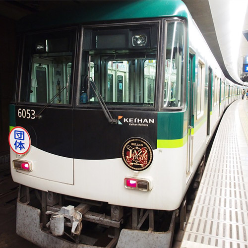 京阪沿線上の各音楽イベントを結ぶ「京街道JAZZライン2015」の総括となるイベント。走る電車の中でJAZZライブが聴けるというとても珍しいイベントでした。ヘッドマークを缶バッチにしたものが切符の変わりに乗車者に配られました。
