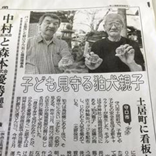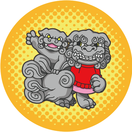 大阪府守口市にある守居神社の狛犬を地域のキャラクターにしたいと ご要望を頂き製作しました。缶バッチになり、地域住民に配布されました。